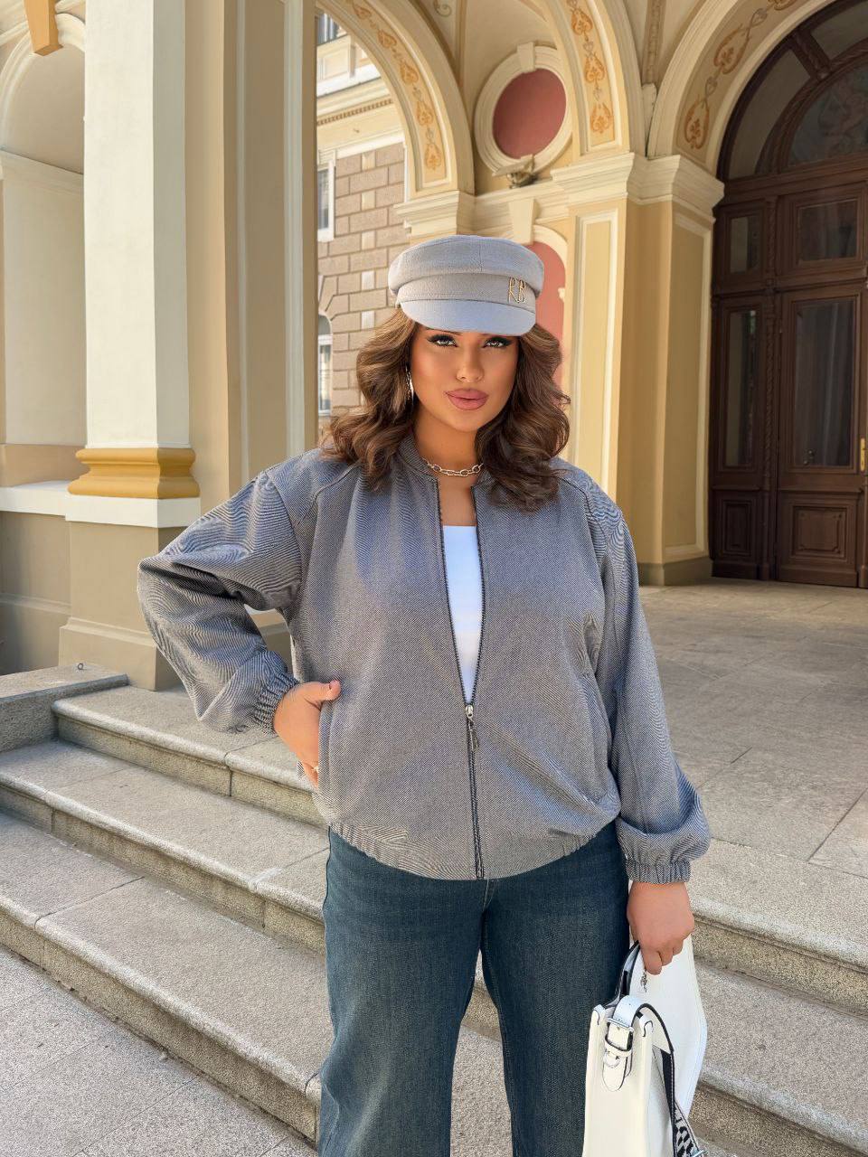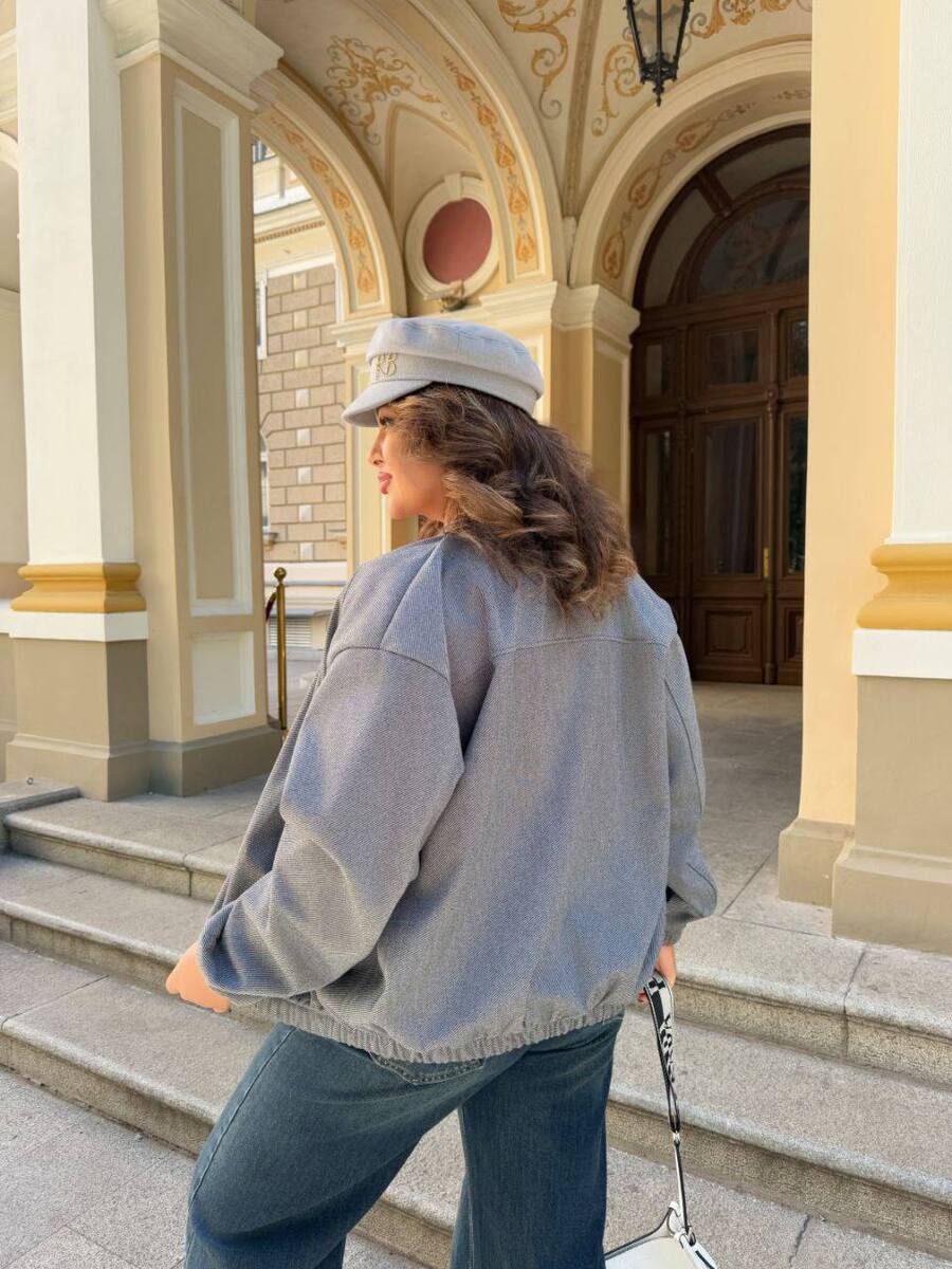 Бомбер виконаний в універсальних кольорах із фактурної тканини, приємної на дотик.