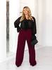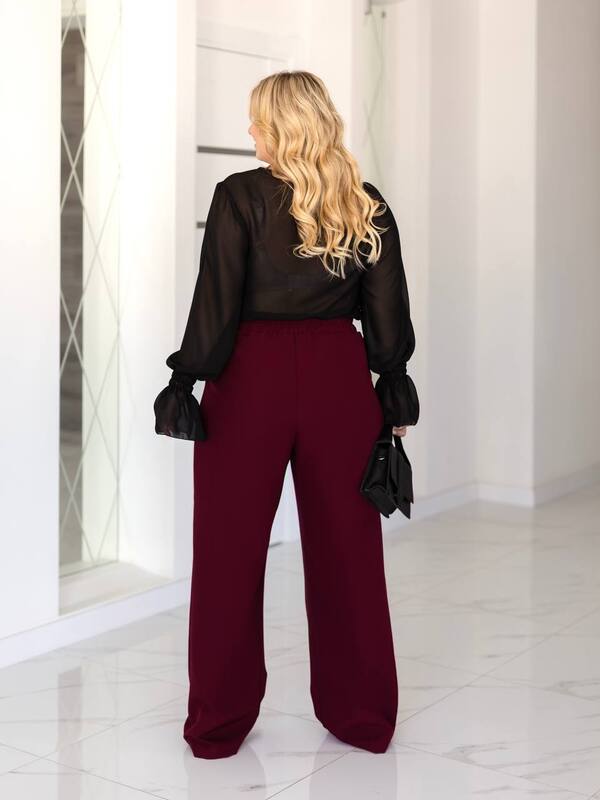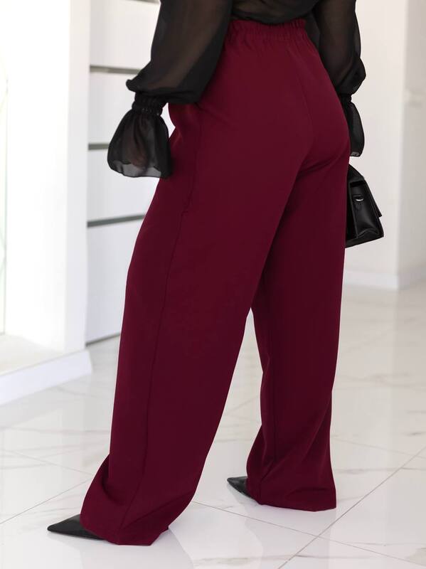 Ці стильні штани із костюмної тканини ідеально підійдуть для створення елегантного та комфортного образу. Вільний крій із широкими брюками візуально витягує силует, а м'який матеріал забезпечує зручну посадку. Висока посадка із защипами додає елегантності та підкреслює талію. Ідеально поєднуються як із класичними туфлями, так і з кедами для більш розслабленого стилю. Відмінний вибір для офісу, прогулянок чи особливих випадків! Штани мають кармани, застібка- блискавка та ґудзик. По спинці на талії іде резинка для кращої посадки.