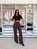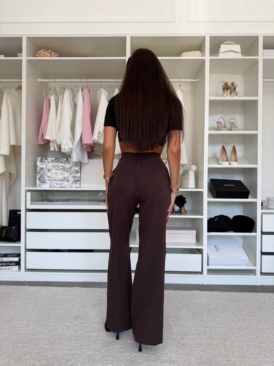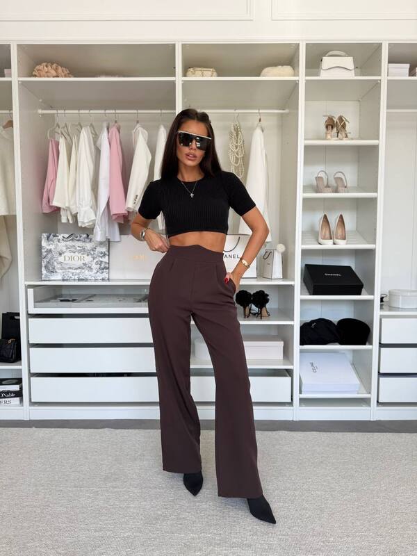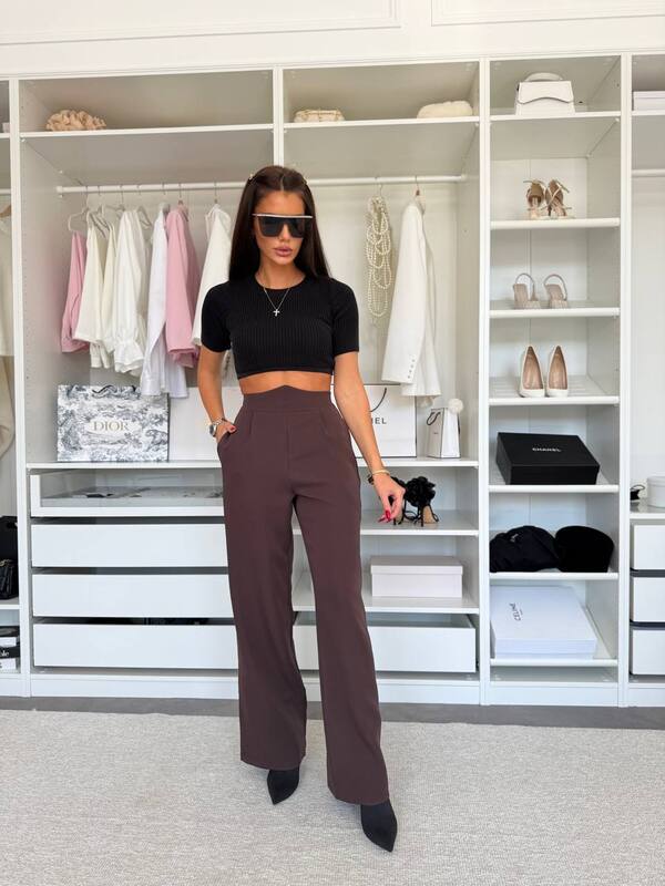 Брюки з оригінальним поясом Висока посадка, ідеальний крій та стильний акцент на талії роблять цю модель максимально жіночною. Вони легко поєднуються як з базовими топами, так і з елегантними сорочками.