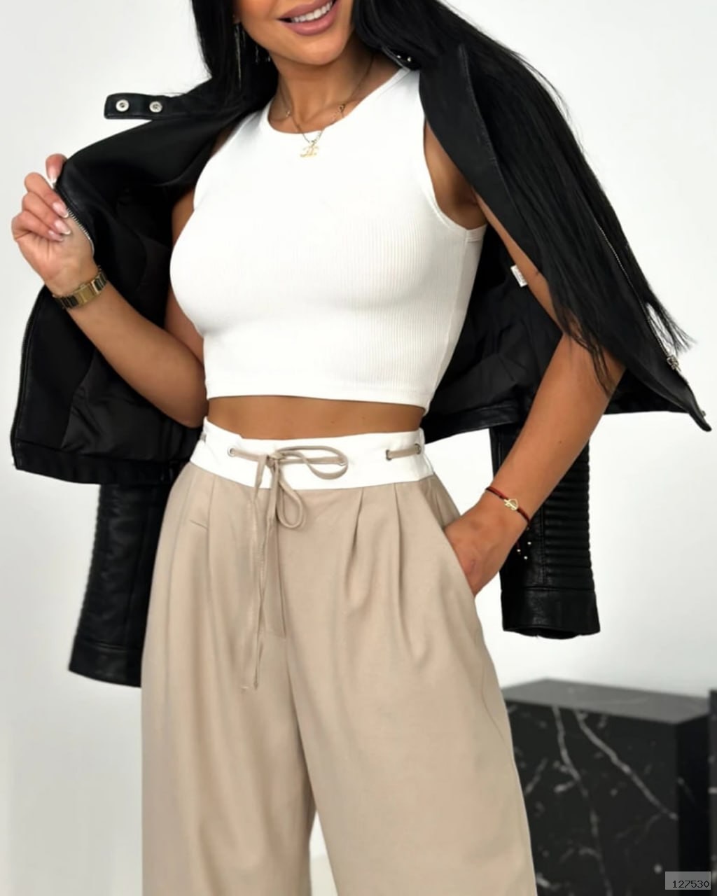 Стильні брюки палаццо із костюмки - зад пояса на резинці, кармани по бокам