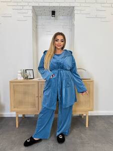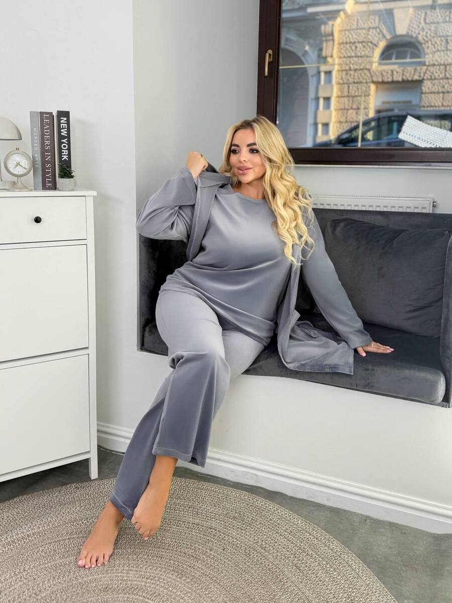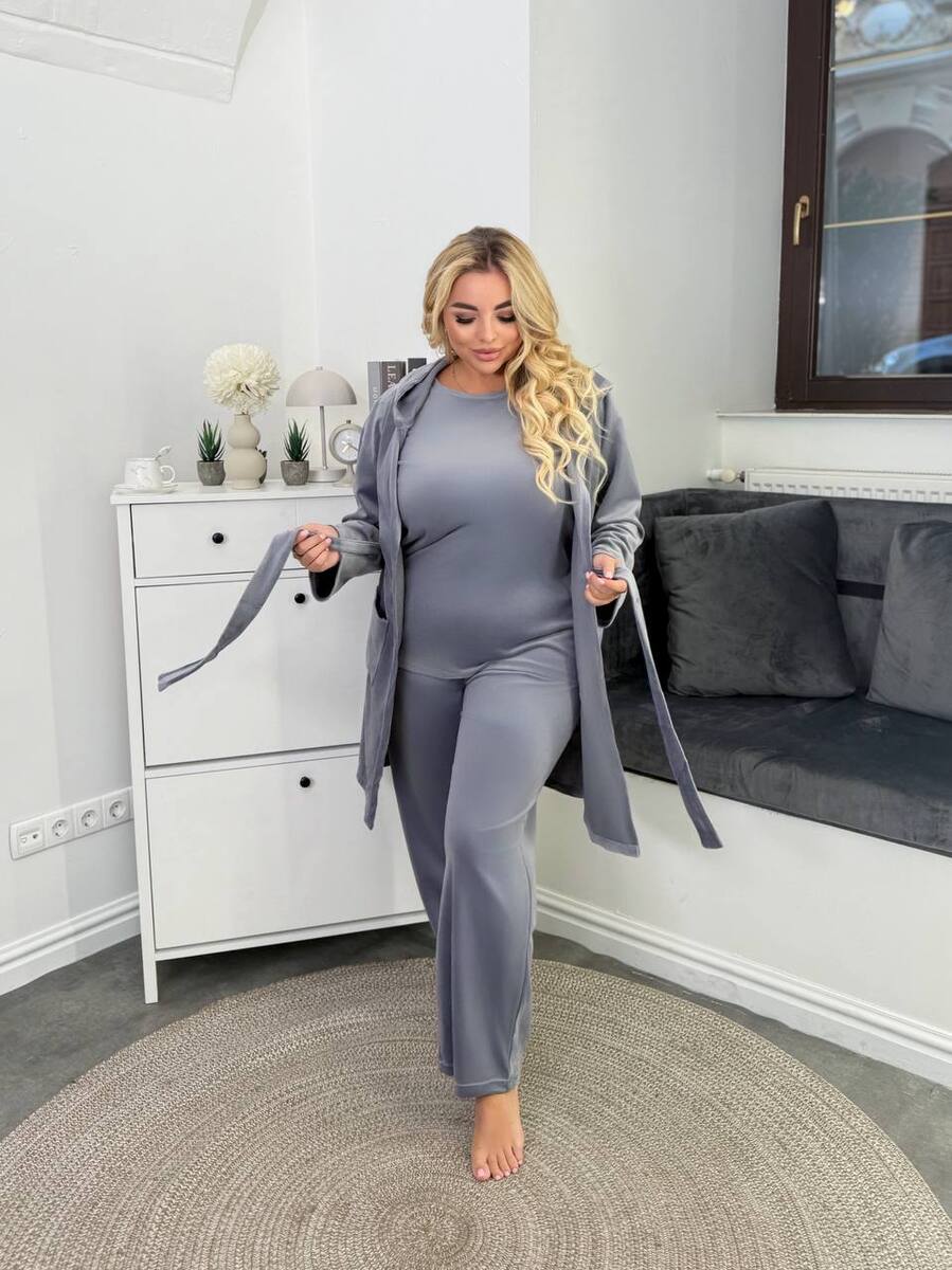 Піжама-трійка з велюру — м’який і затишний комплект для максимального комфорту. Велюр приємний до тіла, ніжний на дотик і виглядає стильно та охайно.