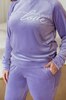 М'який і зручний домашній костюм, виконаний з шовковистого велюру, дозволить вам відчувати себе максимально комфортно і привабливо. У комплект входять однотонні штани-джогери на резинці з кишенями і манжетами, а також лаконічний світшот в тон з декоративним принтом і рукавами-реглан, доповненими манжетами.