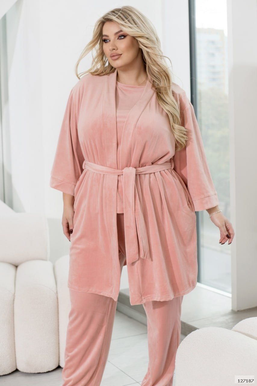 Главная- Женская одежда XL+ (Plus Size)- Пижамы XL+-Домашній костюм трійка 127187