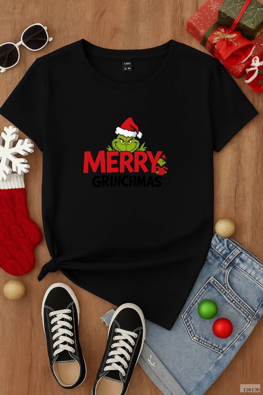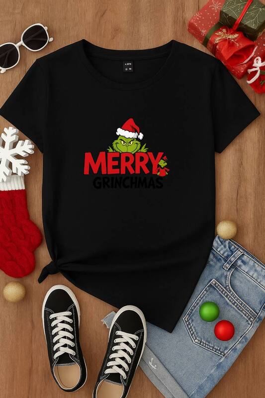 Стильна новорічна футболка з веселим принтом “Merry Grinchmas”. Виконана з м’якої та приємної тканини, добре тягнеться й комфортно сидить по фігурі. Чудовий варіант для святкових образів, новорічних вечірок, подарунків і красивих фото у різдвяній тематиці.