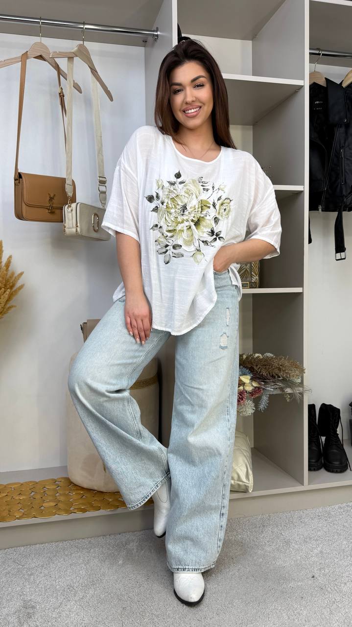 Легкий натуральний льон, комфортний вільний крій. Головний акцент ефектний 3D принт-вишивка спереду. Ідеальна для літа та щоденних образів.