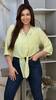 Стильна, повітряна та дуже зручна блуза з натуральної тканини, яка не сковує рухів. Модель з жіночним силуетом, акцентом на талії завдяки трендовому вузлу-зав’язці. Рукав 3/4 із можливістю фіксації