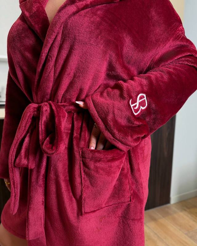 Халат із махри з вишивкою на рукаві. Мʼяка,тепла,приємна до тіла.Високої якості.