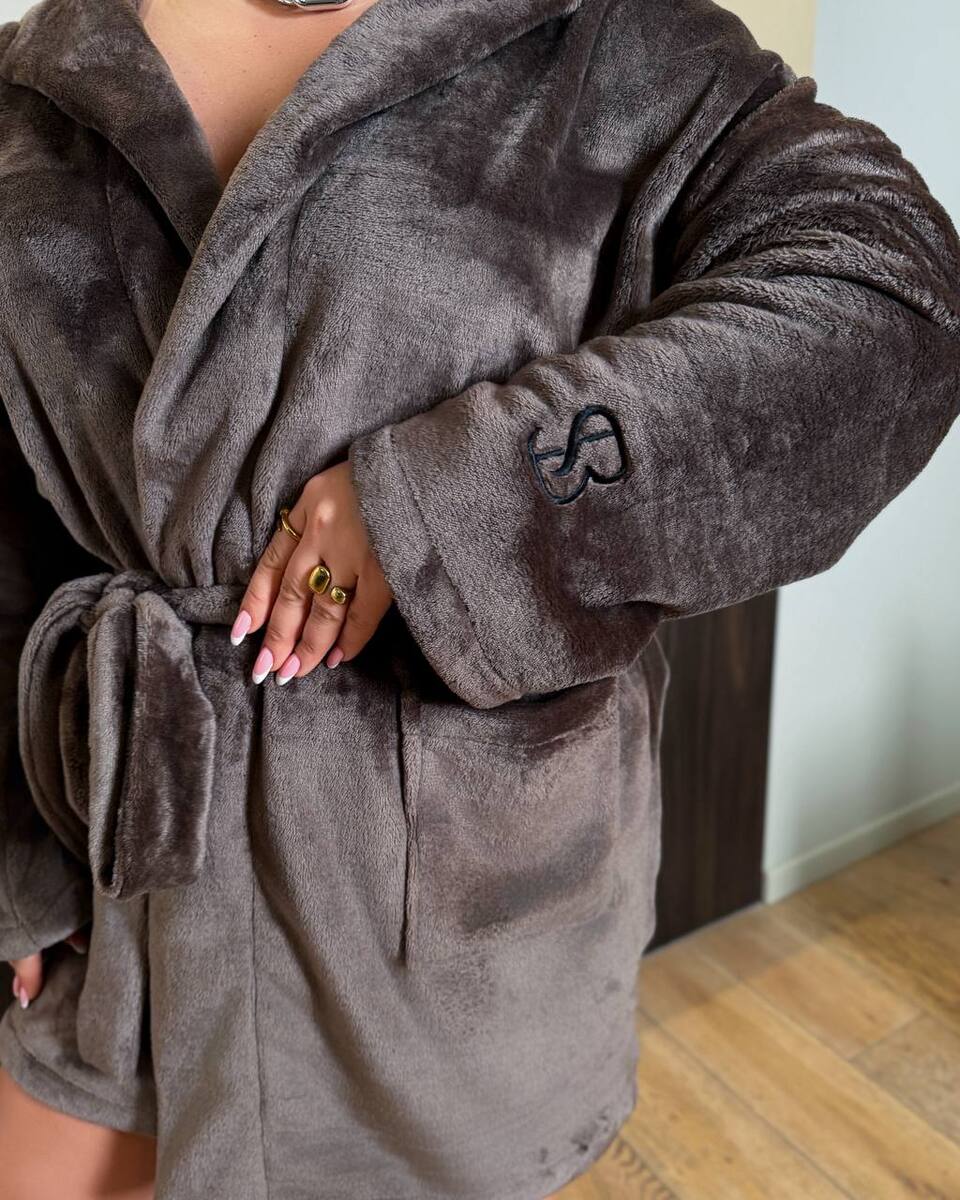 Халат із махри з вишивкою на рукаві. Мʼяка,тепла,приємна до тіла.Високої якості.