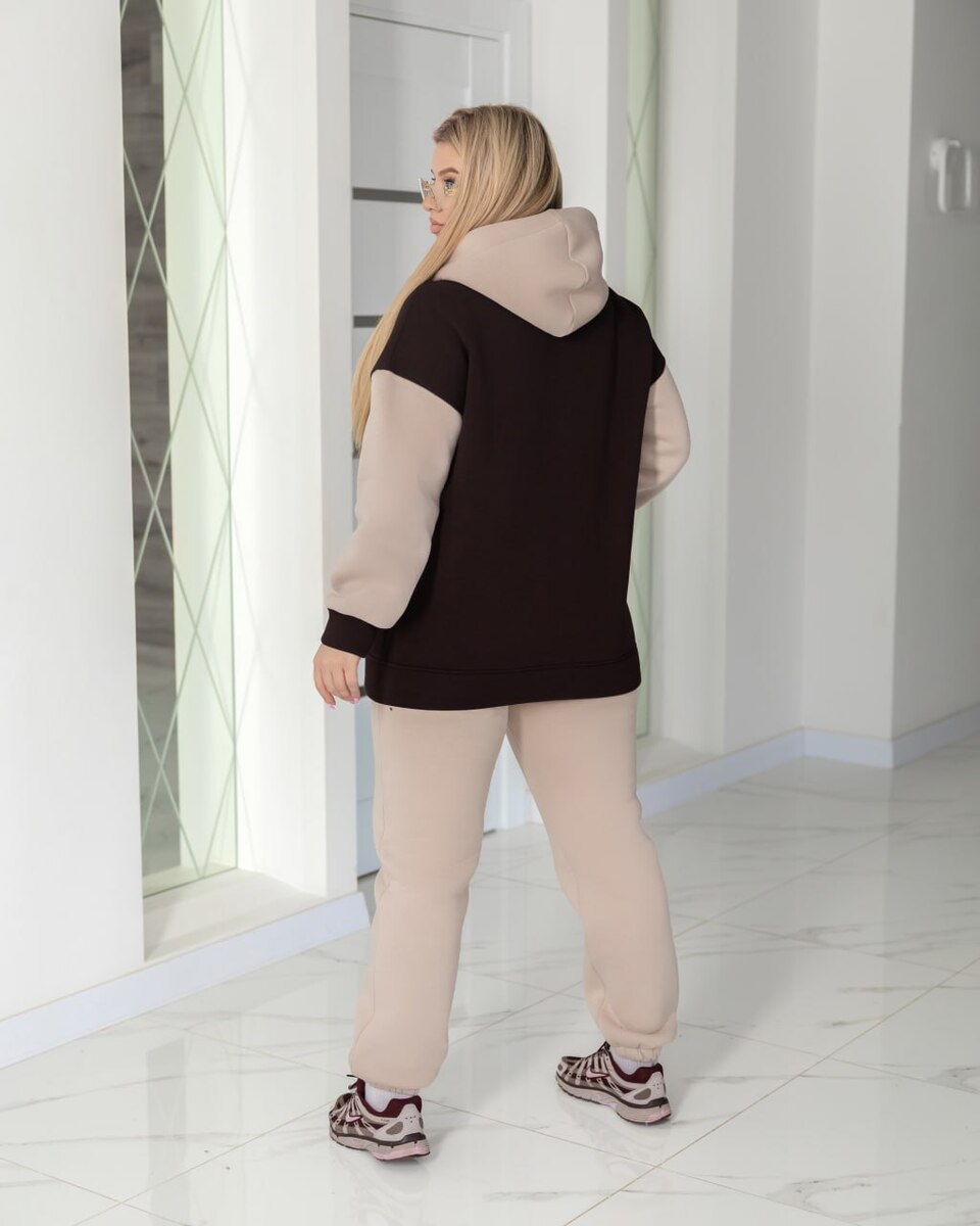 Стильний, теплий зуді на змійці. Подвійний капюшон, манжети рукавів та пояса - з основної тканини.