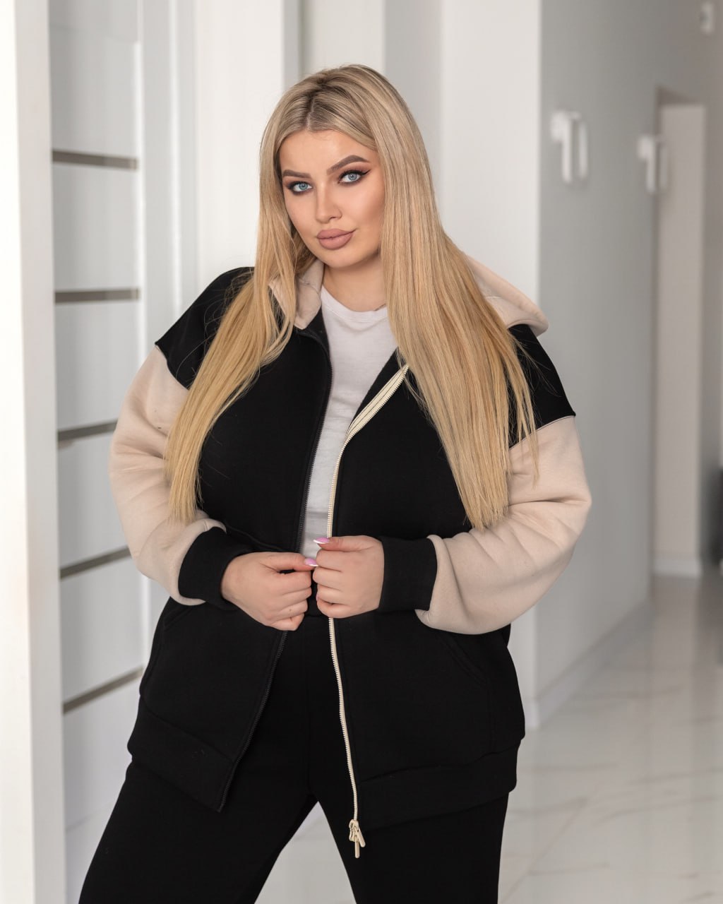 Стильний, теплий зуді на змійці. Подвійний капюшон, манжети рукавів та пояса - з основної тканини.
