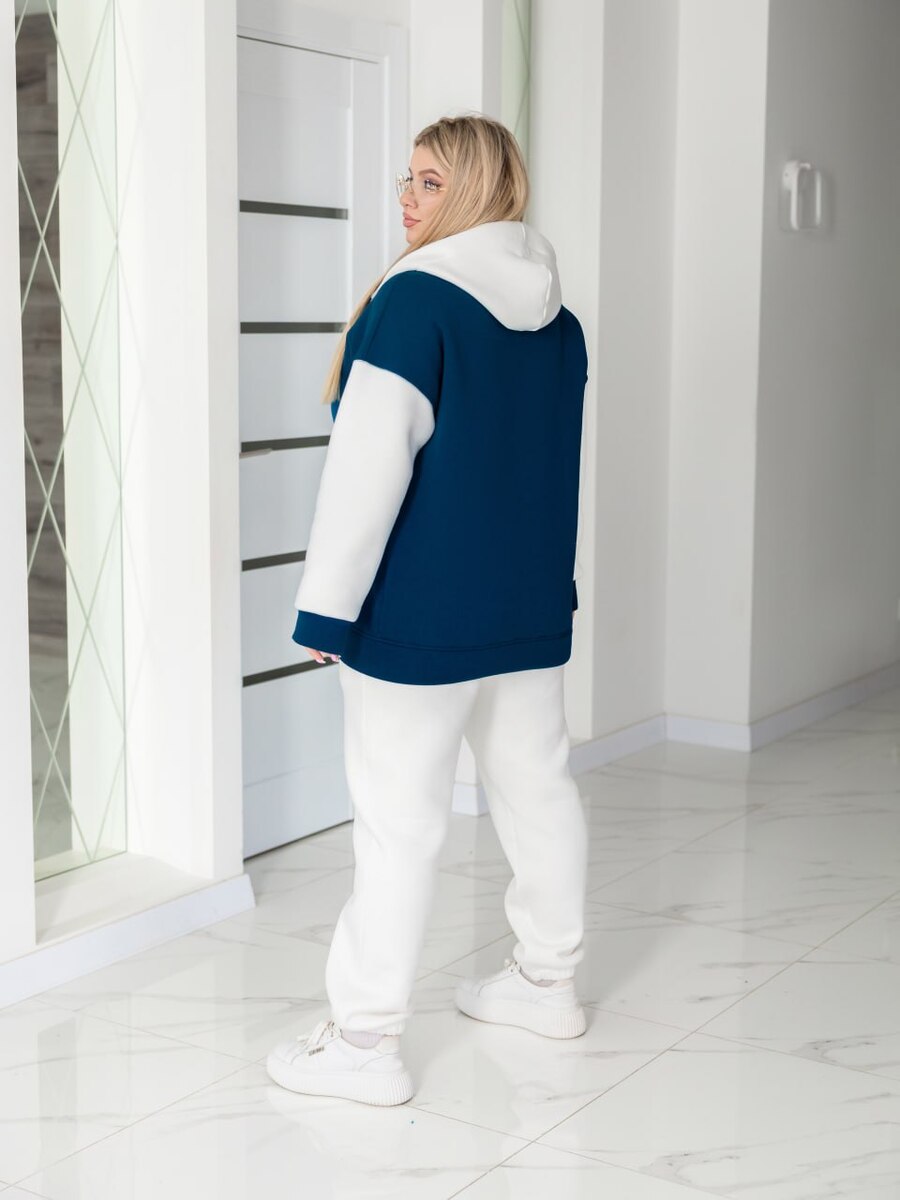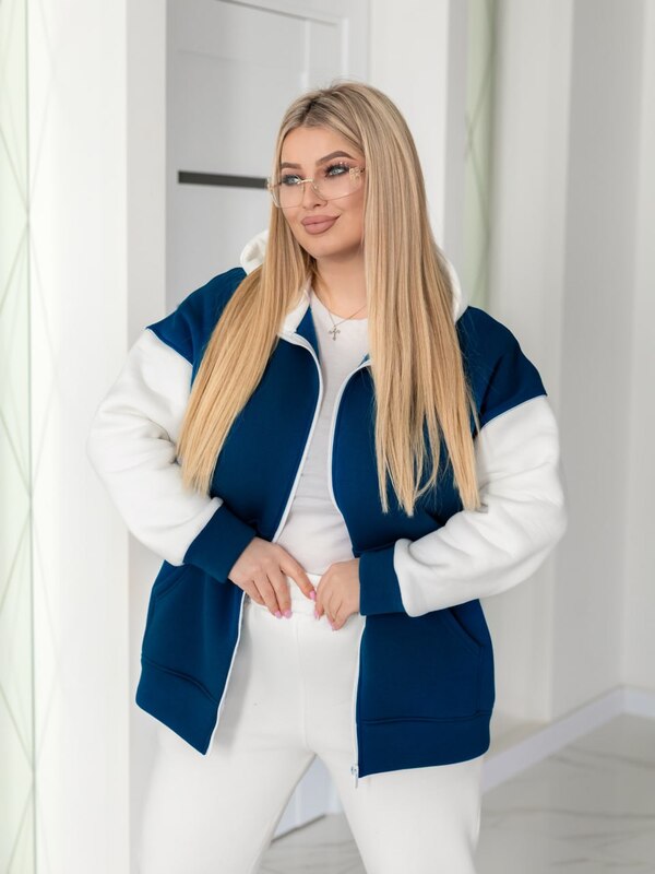 Стильний, теплий зуді на змійці. Подвійний капюшон, манжети рукавів та пояса - з основної тканини.