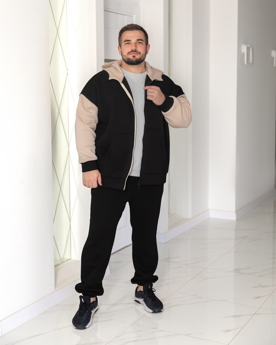 Стильний, теплий зуді на змійці. Подвійний капюшон, манжети рукавів та пояса - з основної тканини.