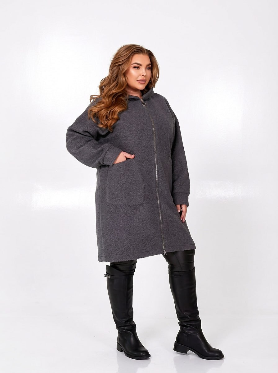 Неймовірно стильний, комфортний кардиган із якісної тканини «баранець» (середня розтяжність). Кардиган має прямий вільний силует та капюшон. Лінія плеча спущена, рукав на манжеті. Застібається на блискавку. Попереду є дві накладні кишені.