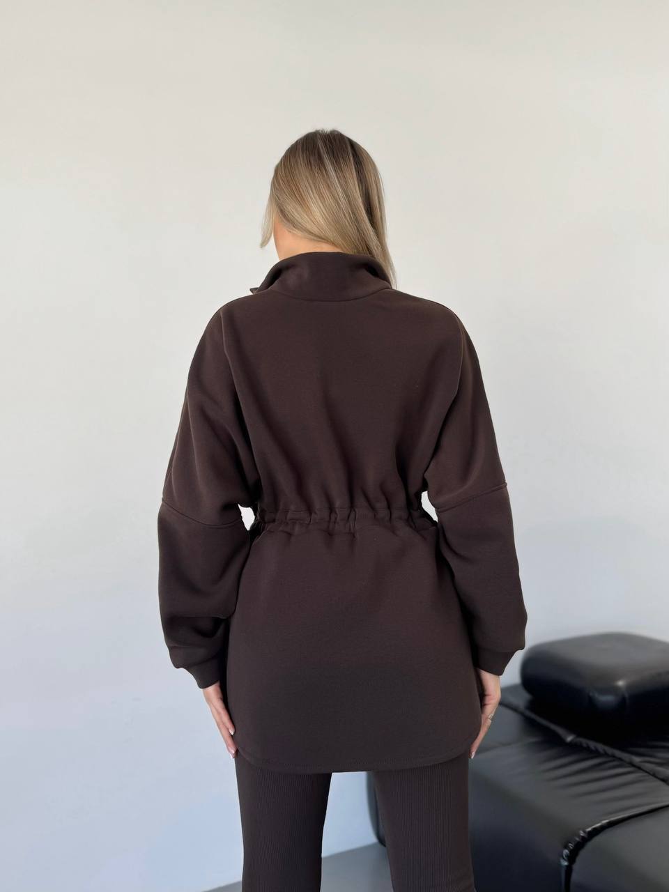 Модель має талію на затяжках, що дозволяє регулювати об’єм і створювати бажаний силует.