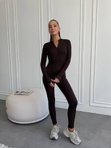 Це стильний обтислий комбінезон із довгим рукавом та застібкою-блискавкою спереду.