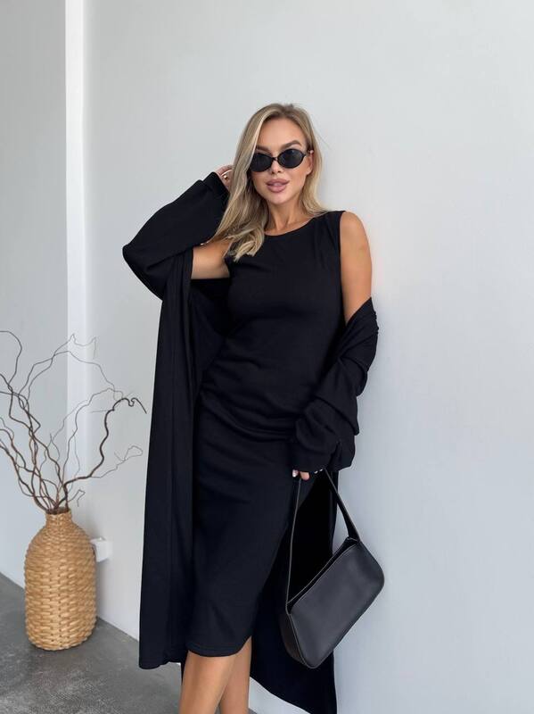 Ніжний та елегантний дует: облягаюча сукня міді + вільний кардиган.