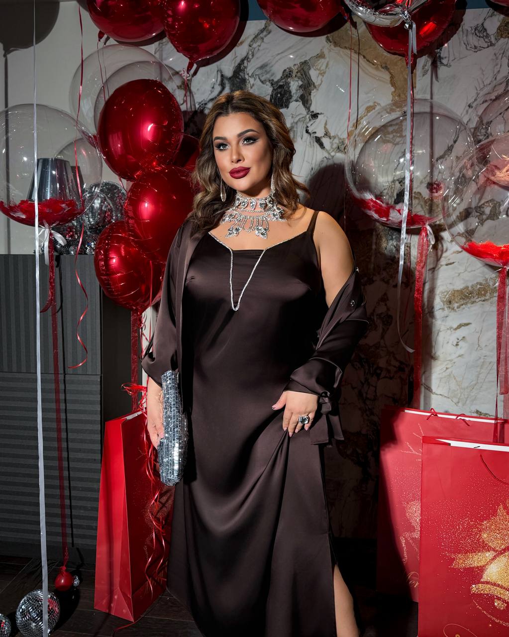 Вишуканий комплект з Армані шовку — легкий, м’який і приємний до тіла. Ідеально сідає на пишні форми, красиво підкреслює лінії фігури та дарує ефектний вечірній образ.
