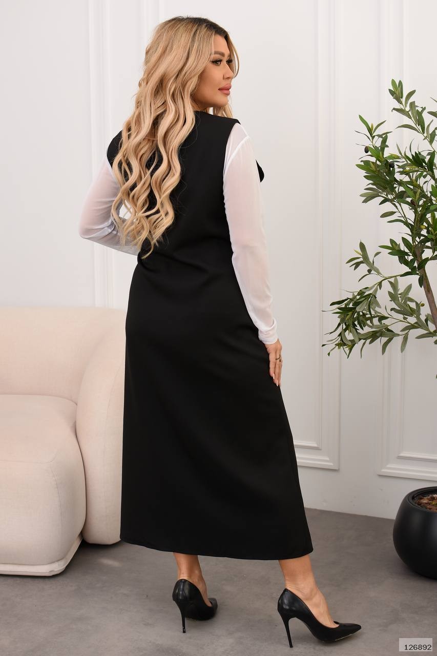 Нарядний комплект : плаття без рукавів , з боків дві кишені -імітації , спереду два розрізи вище колін, V-образний виріз; гольф з довгим рукавом.