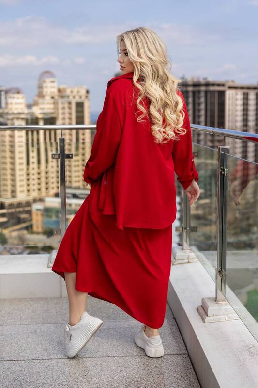 Сорочка на ґудзиках, рукав регулюється прихованим патіком на ґудзику, варіант довгий та укорочений рукав. Сарафан на брителях з регуляторами.