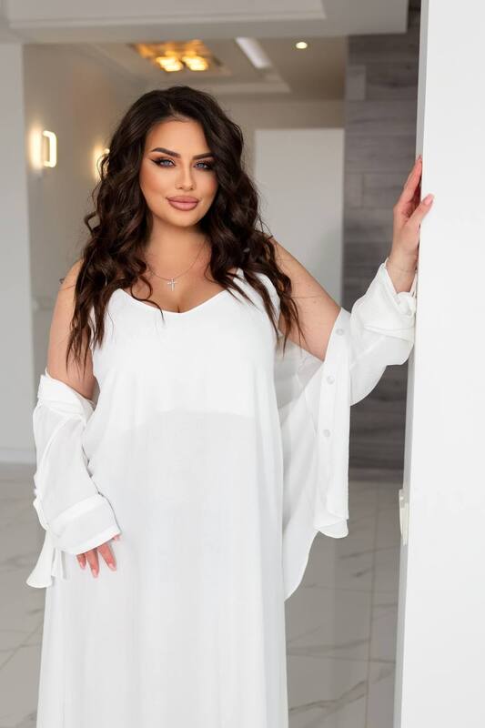 Сорочка на ґудзиках, рукав регулюється прихованим патіком на ґудзику, варіант довгий та укорочений рукав. Сарафан на брителях з регуляторами.