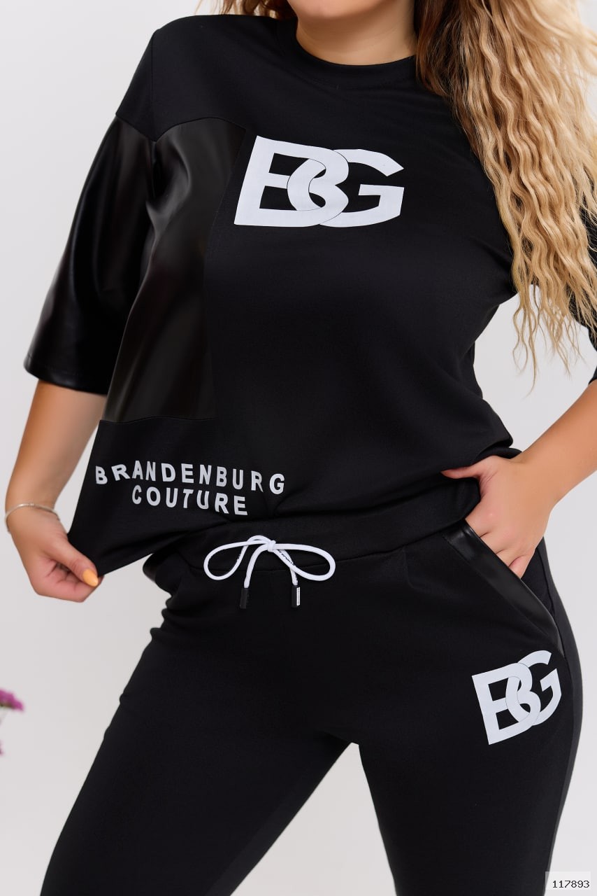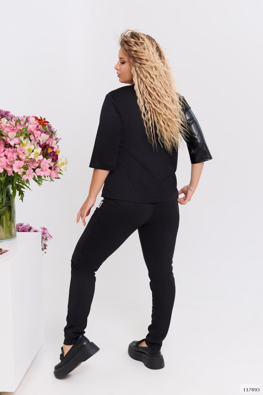 Повсякденний костюм-двійка із вставками з еко-шкіри, який ідеально поєднує стиль та зручність. Ідеальний вибір для прогулянок, роботи або активного відпочинку.