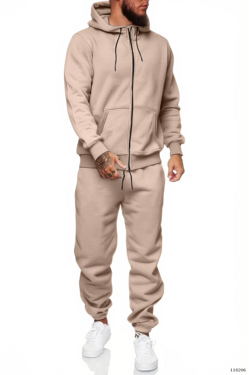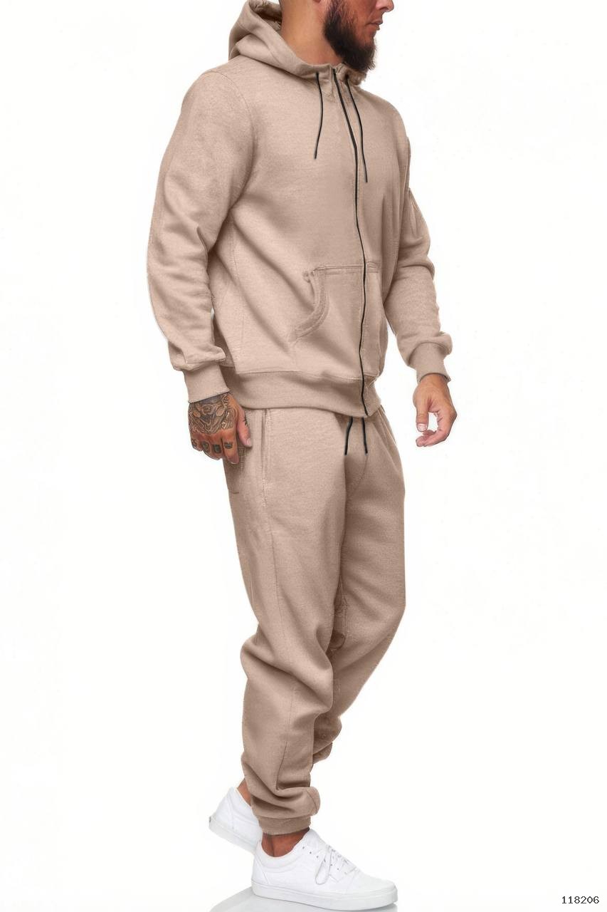 Кофта на блискавці з капюшоном і кишененями,штани на резинці зі шнурком,бічними кишенями та манжетами.