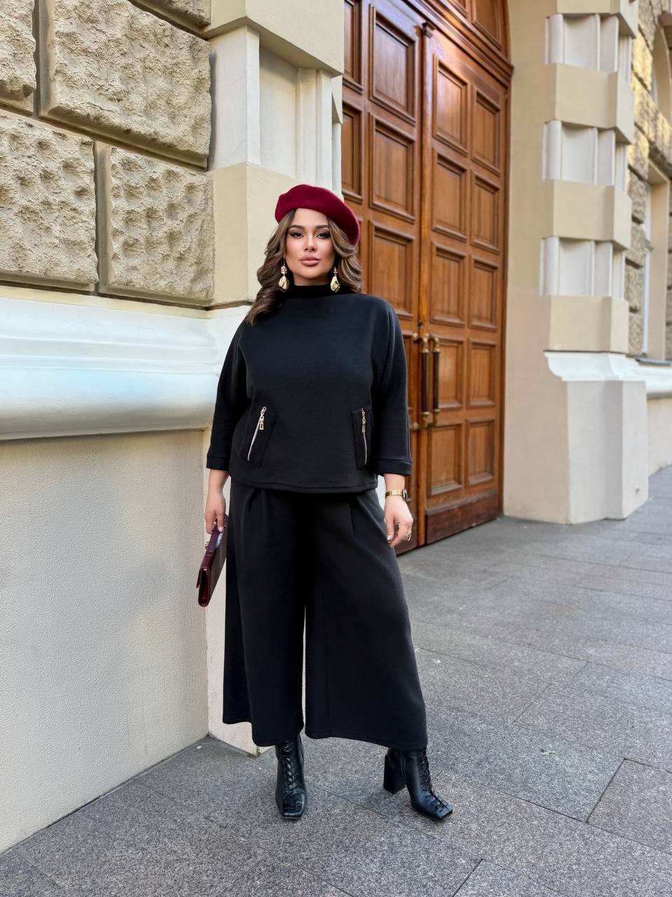 Дуже стильний костюм з широкими штанами , з мʼякої ,приємної до тіла тканини, це актуальний образ може бути як класичним ,так і повсякденним, і додає легкості та свободи.