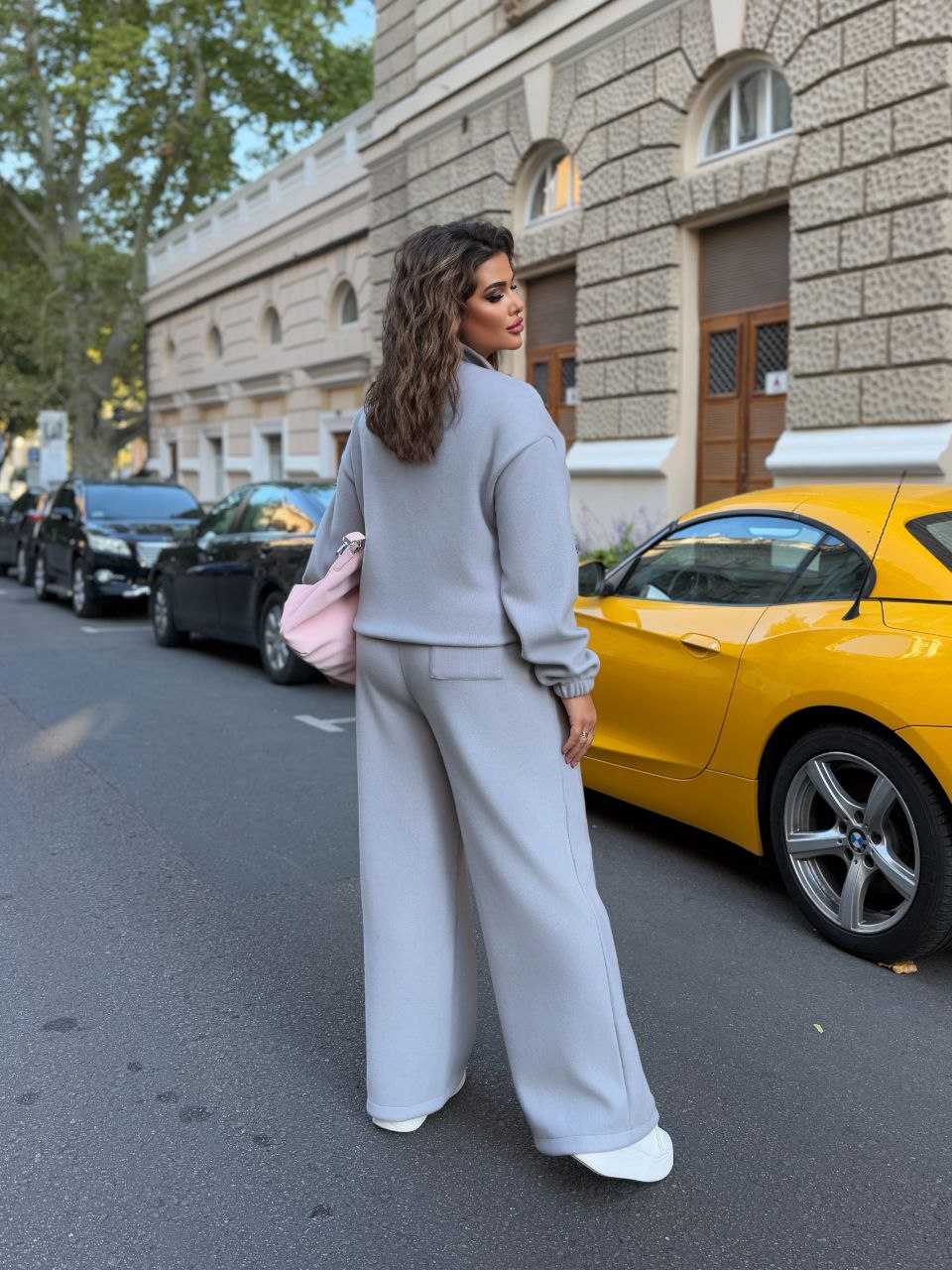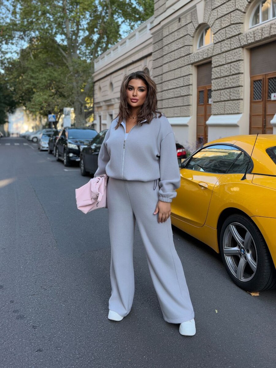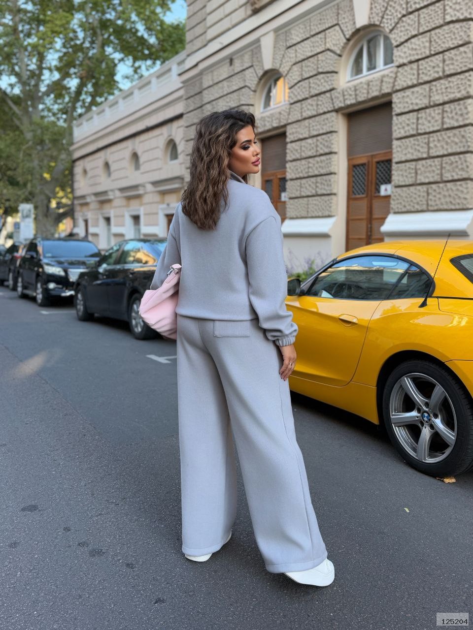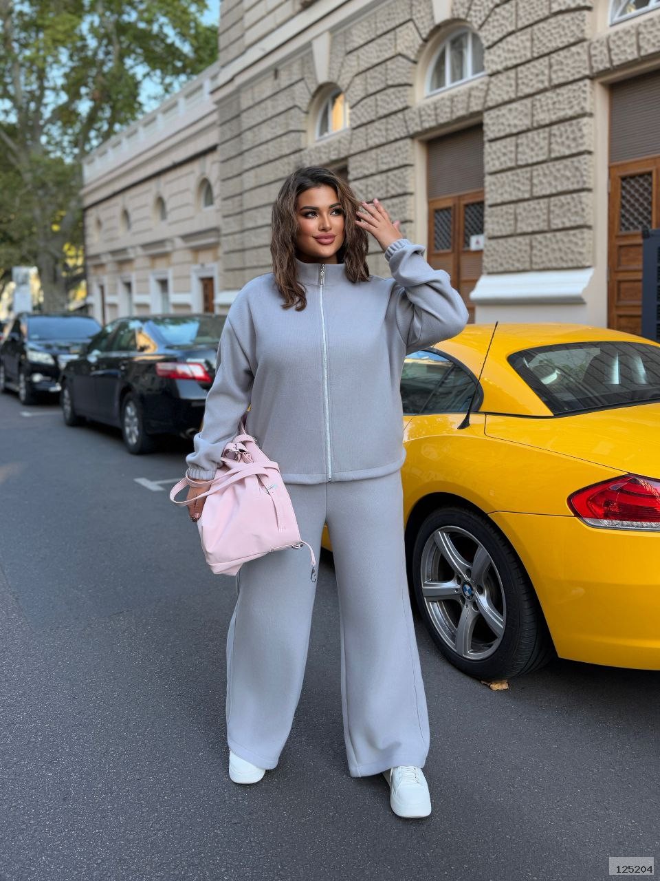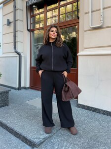 Кофта на блискавці,вздовж боків є кишені ,обстрочені рамкою.Низ на резинці зі стопорами,які дають можливість носити верх костюма більш прямим,чи затягнути і зробити з напуском,більш коротшу довжину. Комір-стійка. Низ рукавів на резинці.