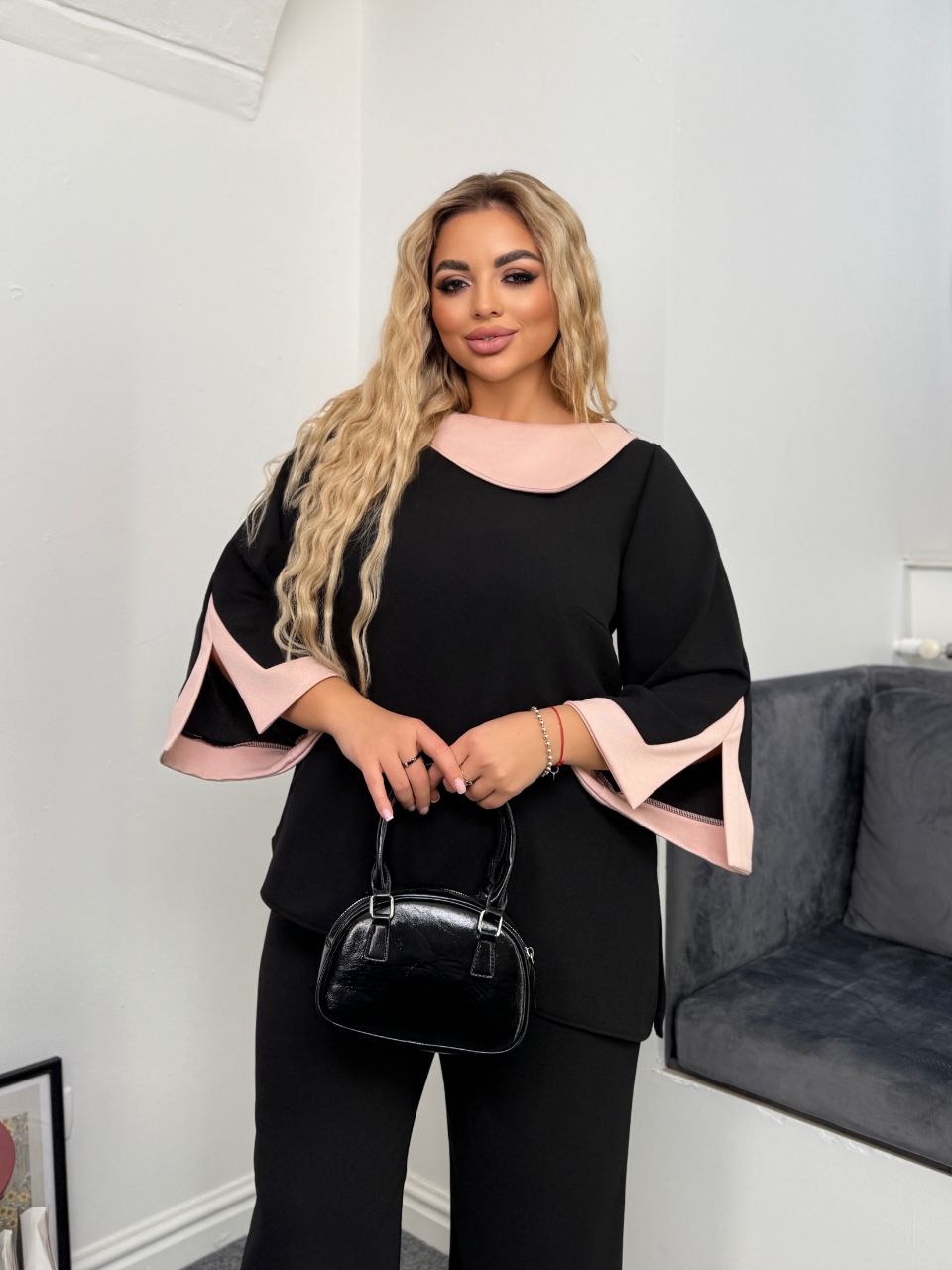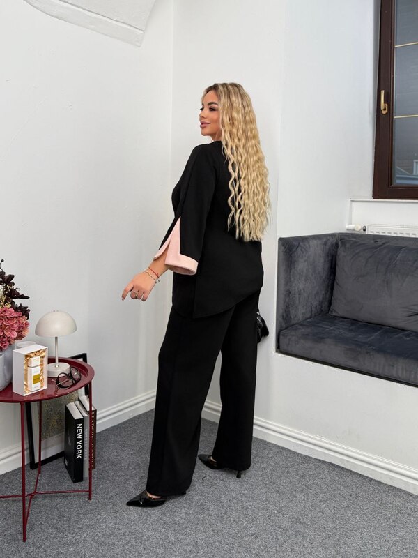 Комплект двійка, асиметрична кофтинка зі вставками пудрового кольору, з боків розрізи на рукавах та по низу кофти.