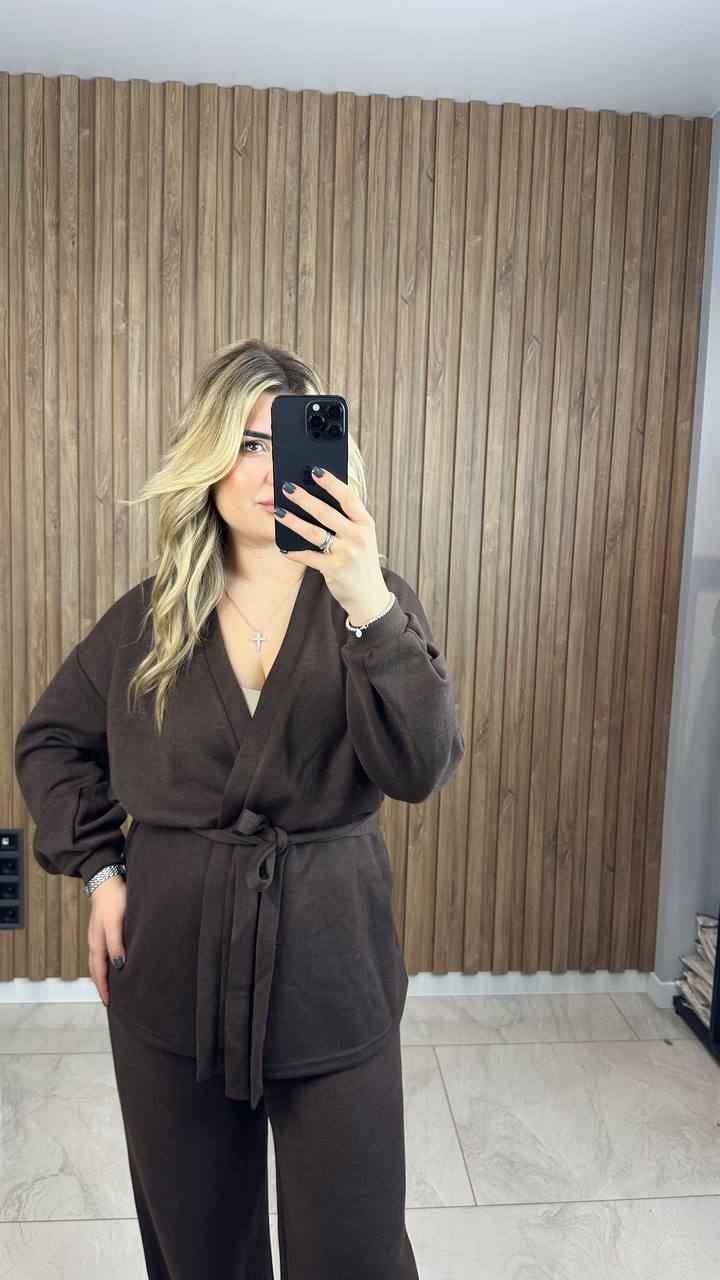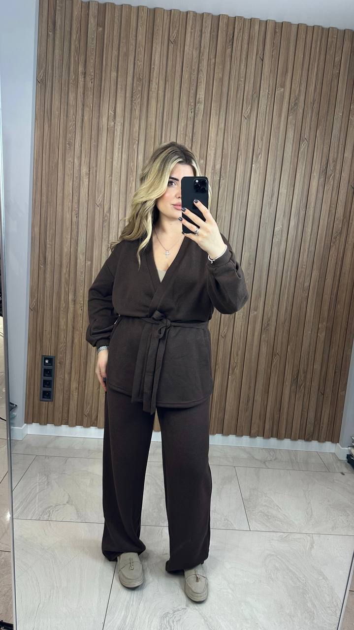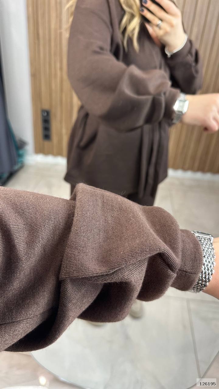 Костюм із двосторонньої ангори з кардиганом — це м’який, теплий і дуже комфортний комплект, створений для щоденного носіння в прохолодну погоду.