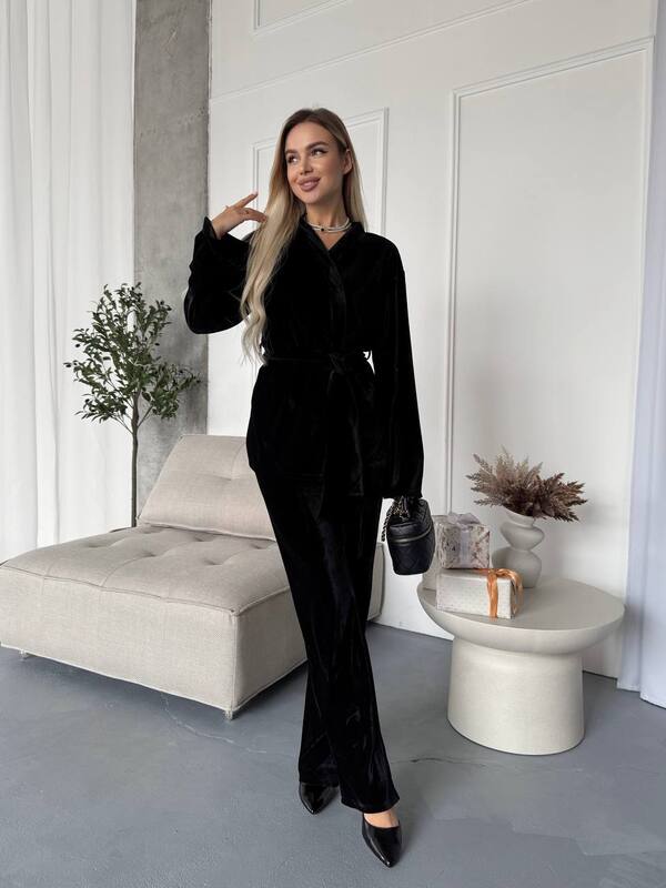 Стильний оксамитовий костюм. Кардиган + прямі штани. В ньому не тільки комфортно і тепло, а ще і дуже стильно