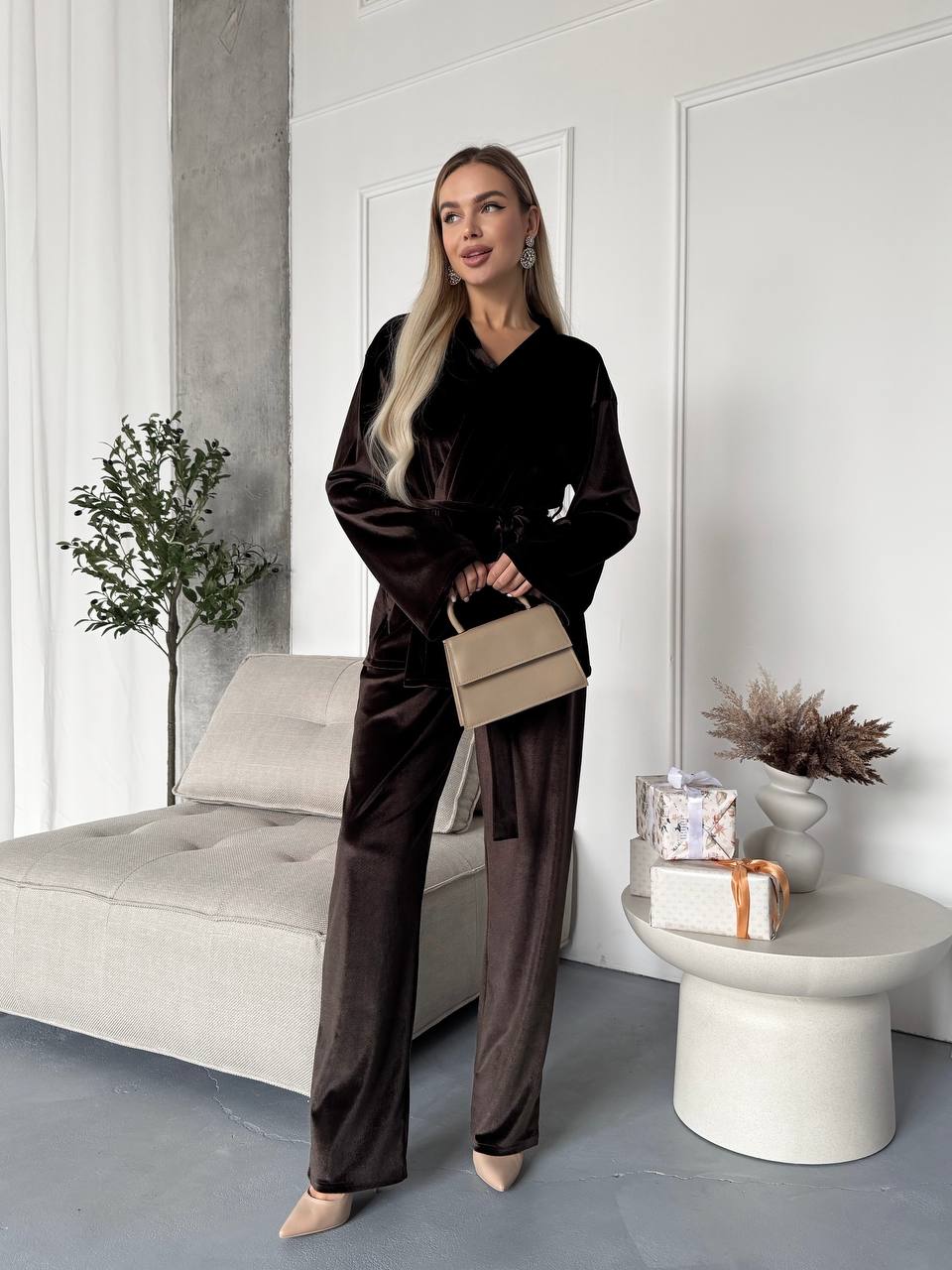 Стильний оксамитовий костюм. Кардиган + прямі штани. В ньому не тільки комфортно і тепло, а ще і дуже стильно