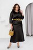 Елегантний святковий костюм зі спідницею, створений із розкішного костюмного шовку, стане вашим ідеальним образом для новорічних свят. Він поєднує витонченість і комфорт, роблячи вас зіркою будь-якої святкової події. Блуза з V-подібним вирізом створює акцент на зоні декольте, додаючи образу жіночності. Спущена лінія плечей та рукави довжиною 3/4 з манжетами на ґудзиках забезпечують стильний вигляд і зручність. Довга спідниця на резинці комфортно сідає по фігурі, а текстильний пояс, що входить до комплекту, дозволяє підкреслити талію та додає завершеності образу.
