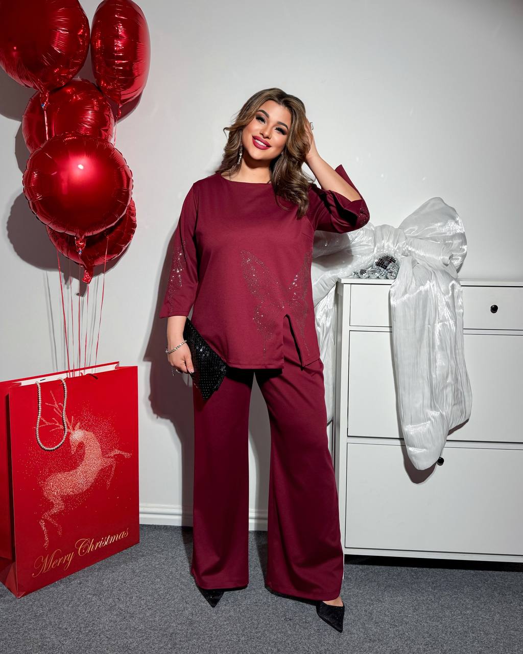 Цей вишуканий брючний костюм, що складається з туніки та штанів палаццо, створений для того, щоб підкреслити вашу жіночність та почуття стилю! Костюм чудово підходить як для урочистих заходів , так і для створення ефектного повсякденного або офісного образу
