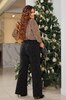 Розкішний комплект складається з вільної блузи та широких штанів "палаццо". Блуза прямого силуету з суцільно кроєними рукавами "кажан". Рукави довжиною 3/4. Низ на манжетах. Штани прямі широкі на поясі з гумкою по колу. Це справді грайливо та святково!
