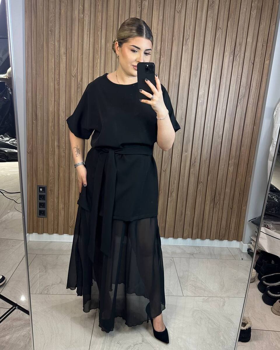 Комплект сукня+спідниця. В комплекті пояс, сукню можна носити під пояс, або без нього, чи додати стильний ремінець.