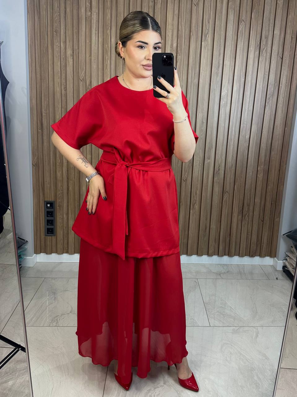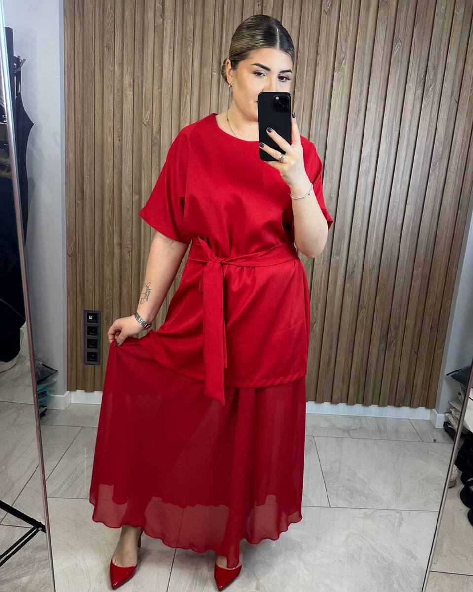 Комплект сукня+спідниця. В комплекті пояс, сукню можна носити під пояс, або без нього, чи додати стильний ремінець.