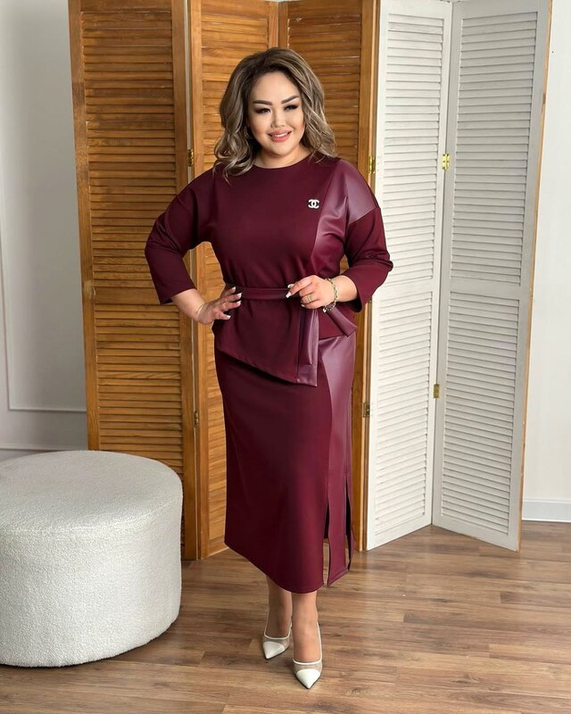 Комбінований костюм двійка спідниця + кофтинка. Спідниця має пояс на резинці. Брошка в комплекті