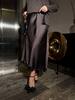 Міді-спідниця з атласної тканини ніжно спадає по фігурі, створюючи витончений силует. Низ спідниці не рівний.Один бік коротший,другий довший.Оздоблення мереживом по низу надає образу завершеності та шарму.