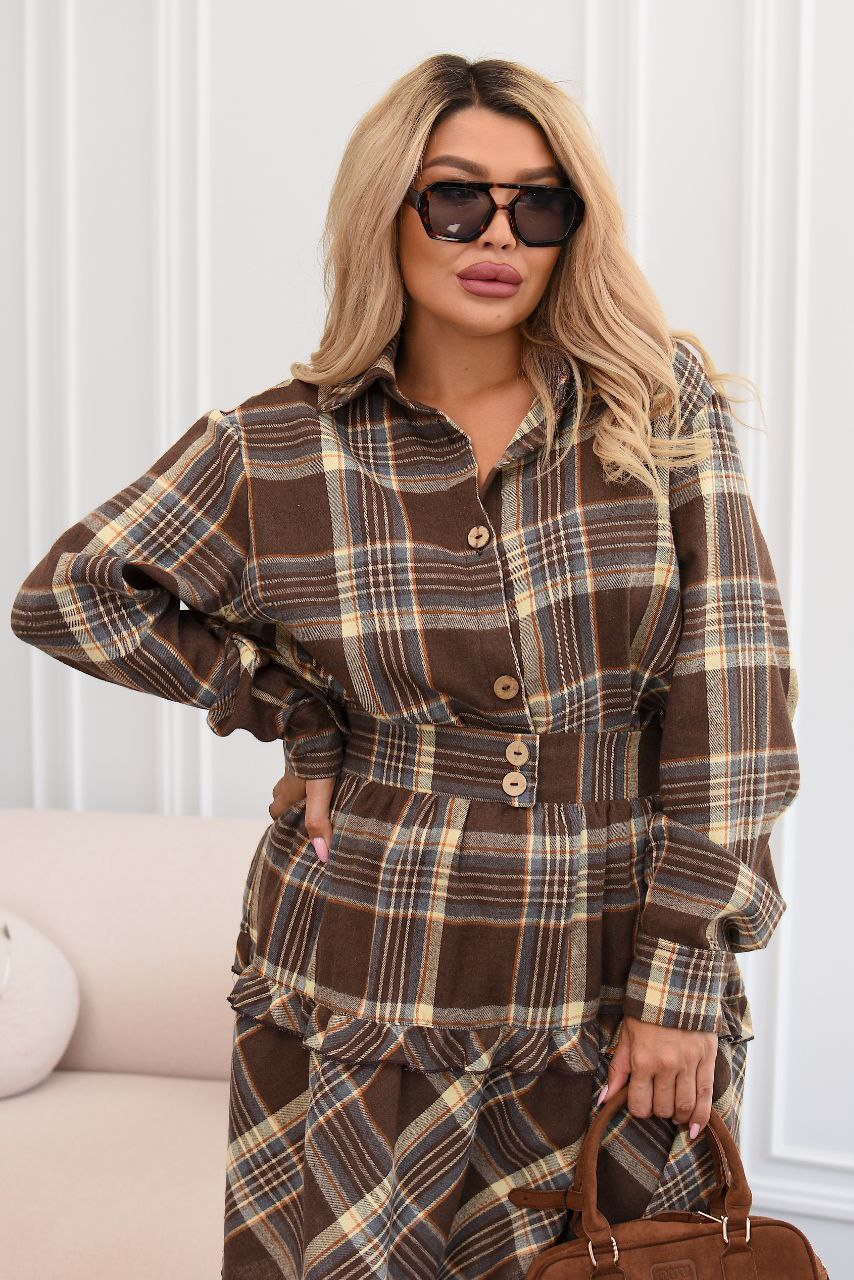 Костюм сорочка та спідниця. трендова клітинка. Ідеальне поєднання