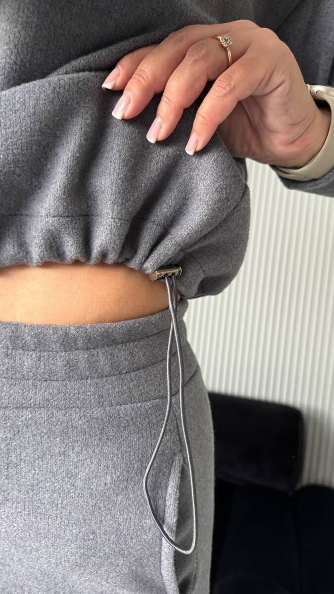 Костюм кофта прямого крою, низ затягується на резиночку з фіксатором, горловина хомут, штани посадка середня, вільного крою, з карманами, талія на резинці