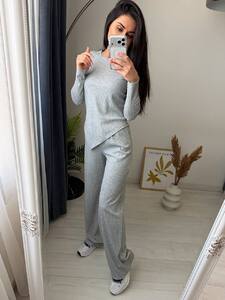 Стильний костюм двійка з рубчику. Асиметрична кофта додає цікавості