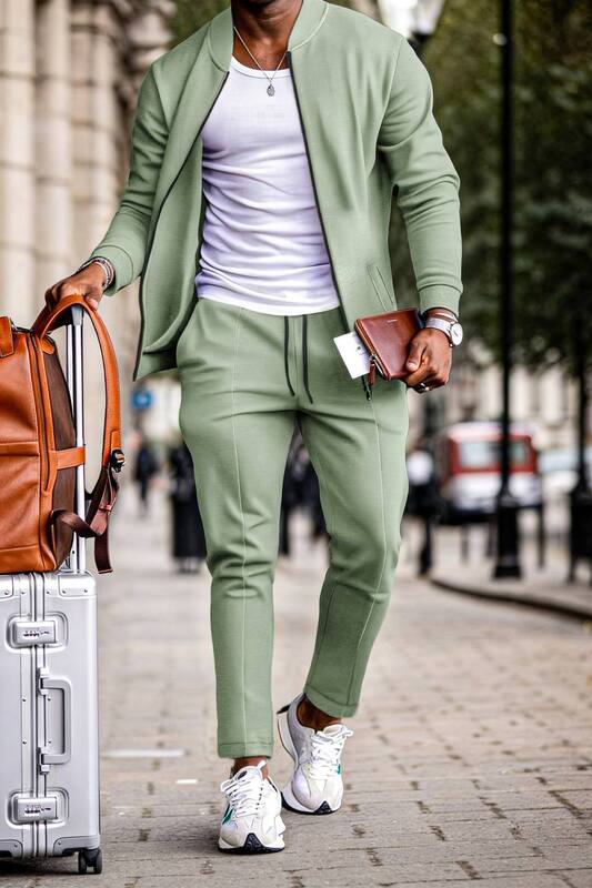 Кофта на блискавці з круглим коміром-стійкою,довгими рукавами на манжетах і кишенями.Штани на резинці зі шнурком та бічними кишенями.