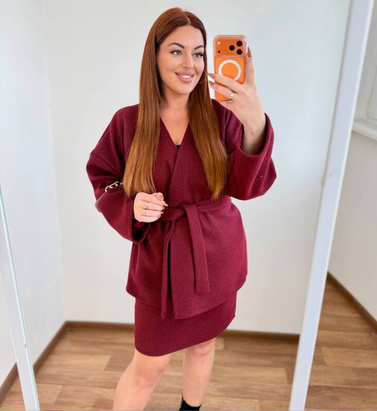 Ніжний, м’який кашемір дарує відчуття тепла та затишку, а продуманий фасон додає жіночності й вишуканості. Комплект складається зі спідниці та кардигана вільного крою, які можна носити разом або комбінувати з іншими речами гардероба.