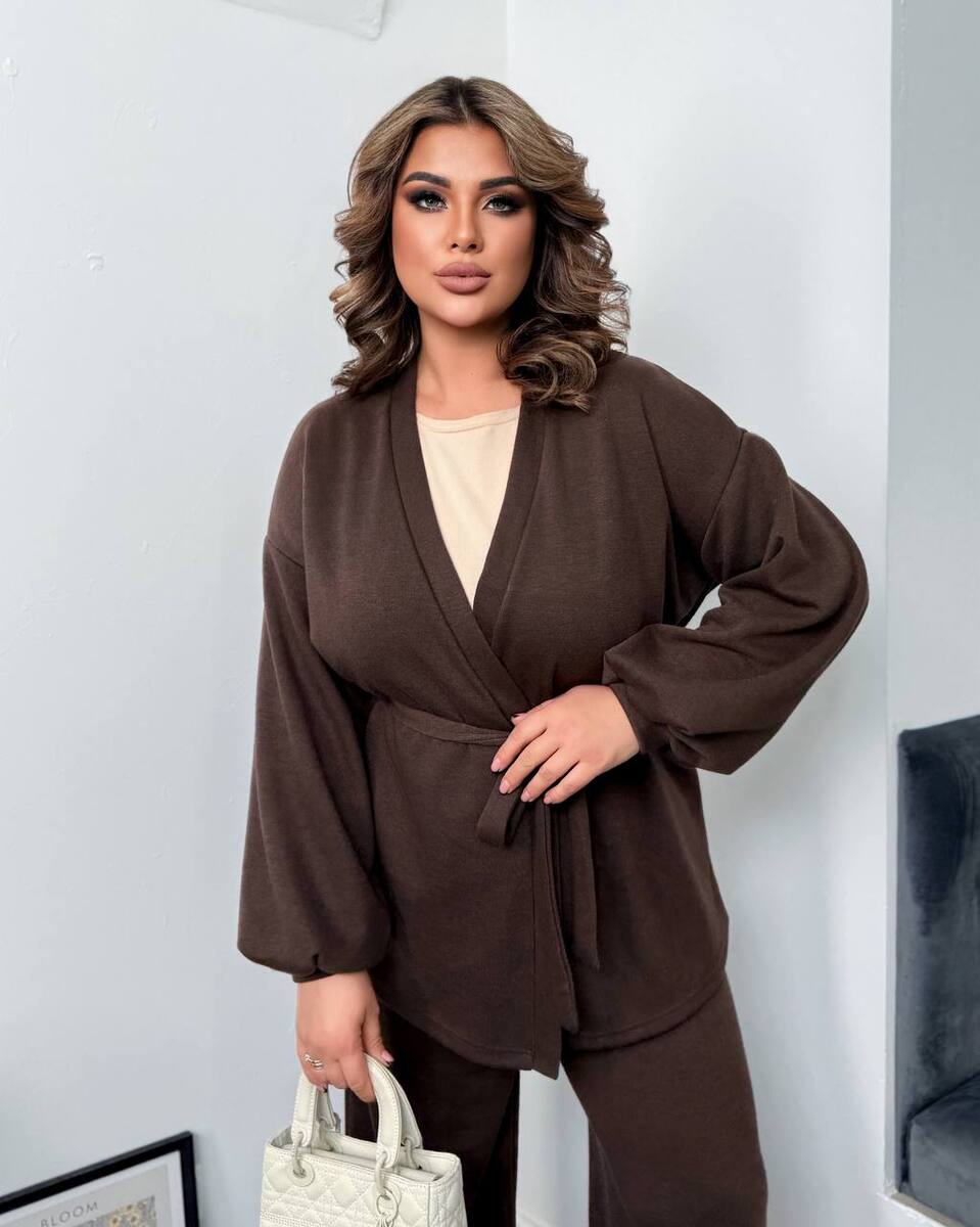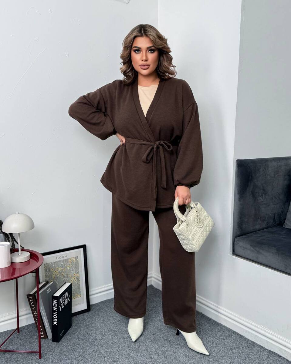 Стильний та надзвичайно комфортний костюм із преміальної двосторонньої ангори — ідеальний вибір для осені та зими. М’яка, тепла та приємна до тіла тканина забезпечує максимальний комфорт, а сучасний крій додає образу елегантності.
