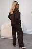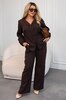 Стильний брючний костюм, який однаково доречний і в офісі, і на особливих подіях. Жакет вільного крою з декоративними застібками-бантиками додає образу елегантності, під верхнім бантом — робочий гудзик. Штани із середньою посадкою та еластичною резинкою ззаду на поясі дарують комфорт щодня.