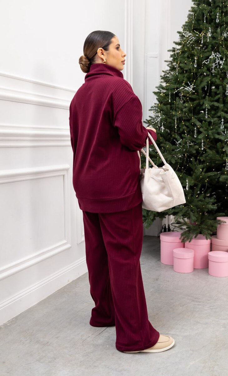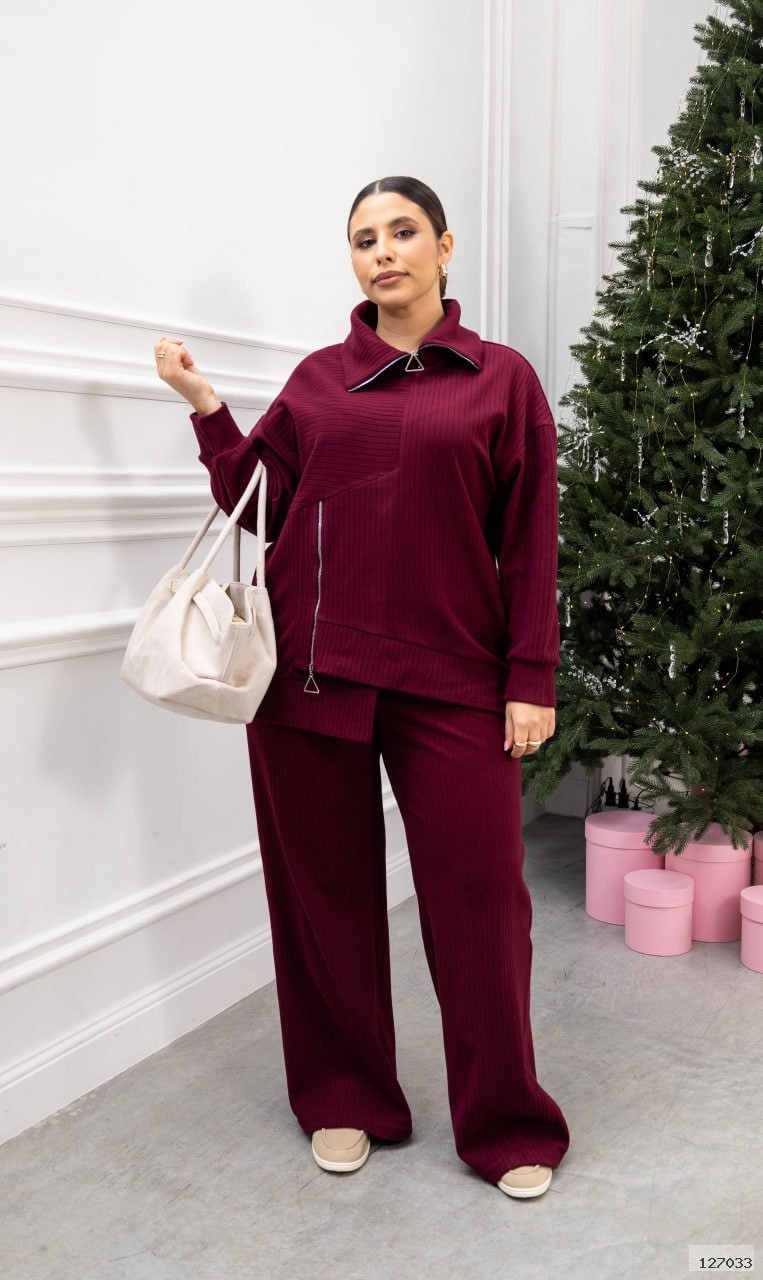 Комфортний костюм-двійка для щоденних образів. Кофта з трикотажу «пума рубчик» приємна до тіла, еластична та доглянута на вигляд. Трендові функціональні блискавки — на горловині й збоку — додають стильного акценту й зручності. Штани середньої посадки на еластичному поясі не сковують рухів, а шовні бокові кишені підсилюють практичність.
