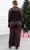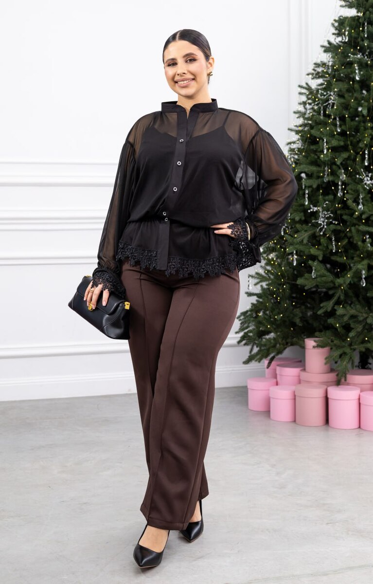 Вишуканий костюм-трійка для бездоганного образу — однаково доречний у офісі та на особливих подіях. Вільна блуза з еластичною посадкою понизу м’яко підкреслює силует, делікатна вишивка на рукавах і по низу додає вишуканого акценту. Під блузу — м’який еластичний топ для комфорту і впевненості протягом дня. Штани середньої посадки з резинкою ззаду на поясі забезпечують легкість рухів і акуратну посадку. Комплект легко стилізувати у мінімалістичній або святковій естетиці.