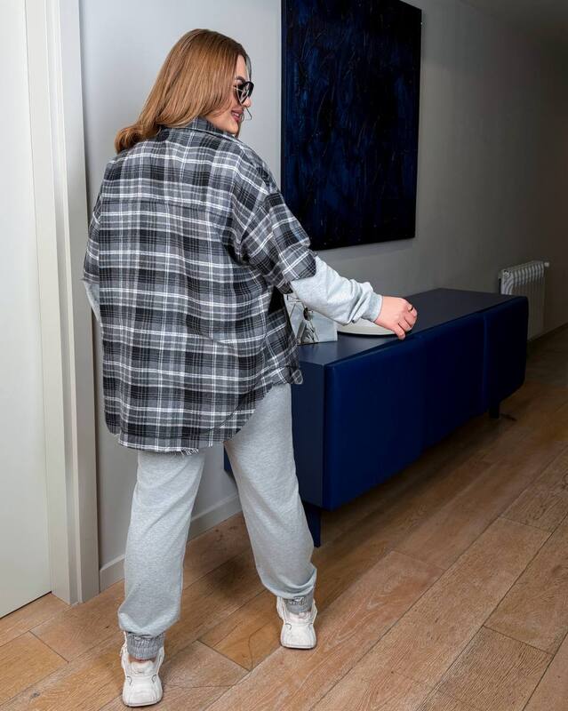 Стильний костюм комбінована сорочка та джоггери. Вдалий варіант для прогулянок