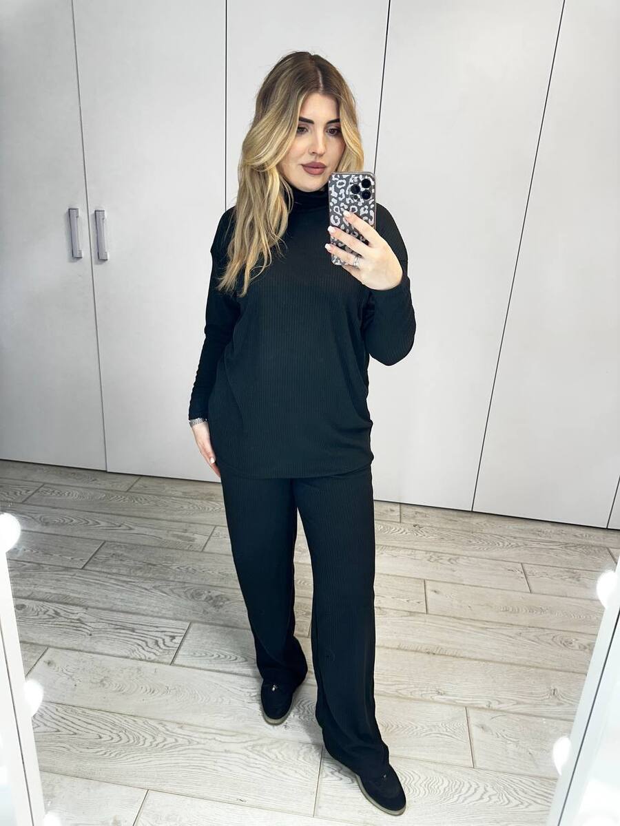 Стильний та комфортний комплект, який ідеально підходить для щоденного носіння. М’який трикотаж у рубчик добре тягнеться, приємний до тіла та красиво підкреслює фігуру. Костюм складається з двох елементів, які можна носити разом або поєднувати з іншими речами гардеробу. Чудовий вибір для прогулянок, подорожей чи затишних образів на кожен день.